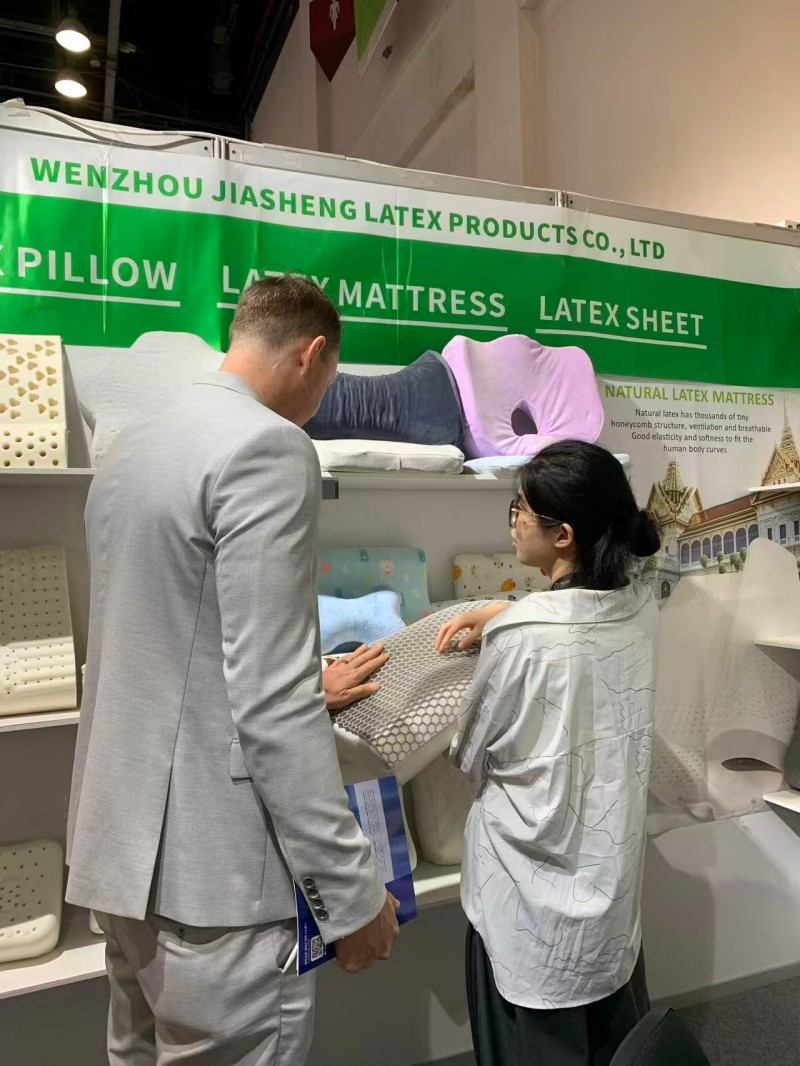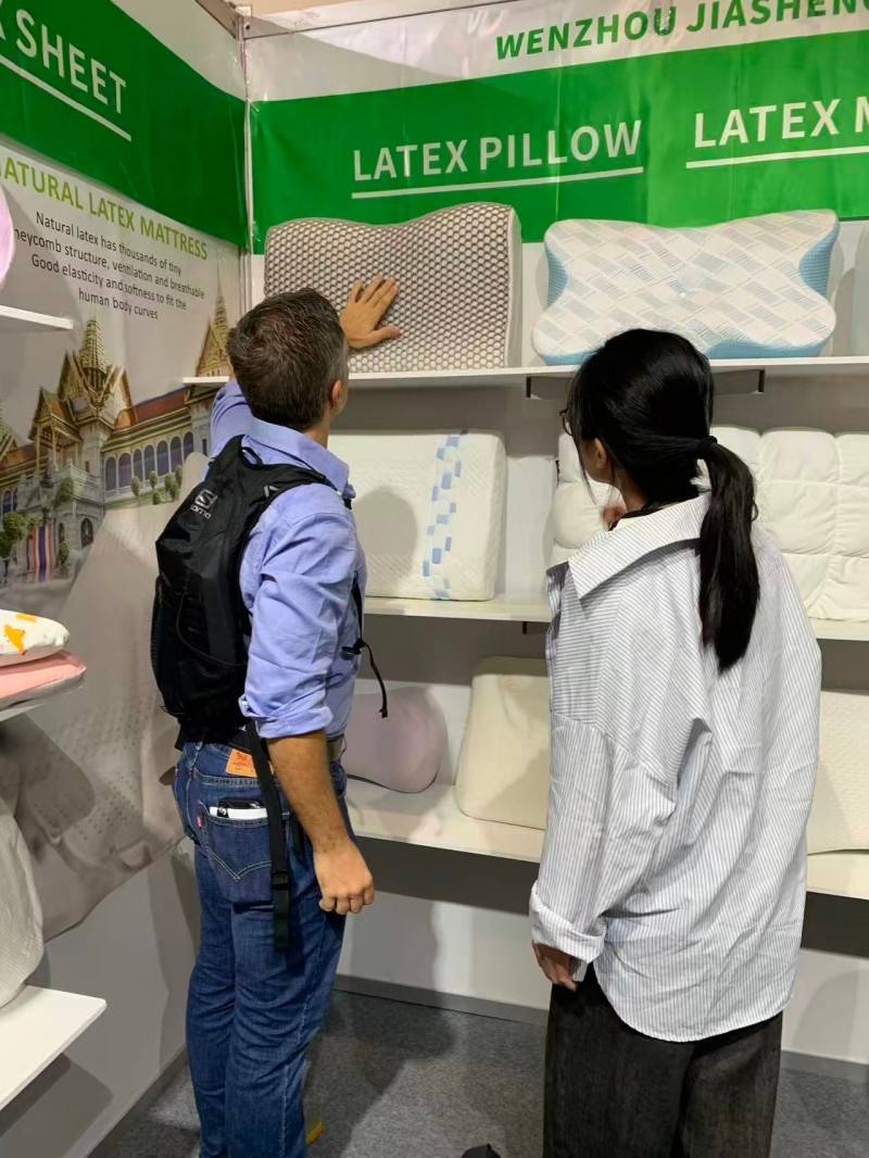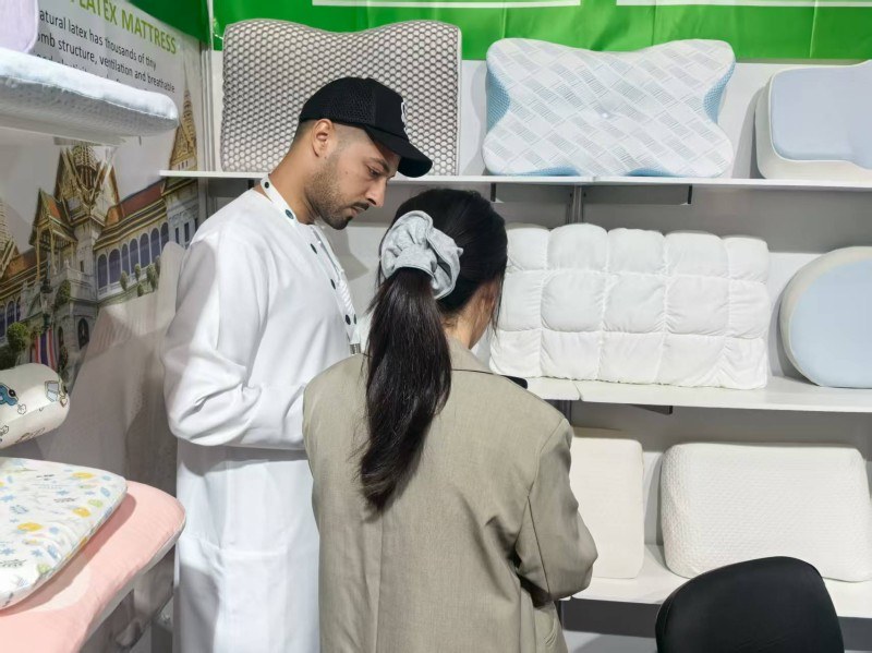 Na tej razstavi spanja v Dubaju smo počaščeni, da obiskovalcem z vsega sveta pokažemo svoje vzglavnike, osredotočene na spanje. Predani smo predstavitvi dveh najbolj prodajanih blazin na trgu:vzglavnik iz naravnega lateksain sodobni pametni materialvzglavnik iz spominske pene. Hiter odboj in antialergijske lastnosti lateksa so zelo priljubljene med navdušenci nad lateksom. Medtem pa lahko vrhunsko prileganje spominske pene zagotovi globok spanec. Zaradi naše poglobljene komunikacije s strankami na mestu smo začutili njihovo prizadevanje za vzglavnike. Trdno verjamemo, da je zagotavljanje osebnih izbir za različne spalne navade ključ do kakovostnega spanca.